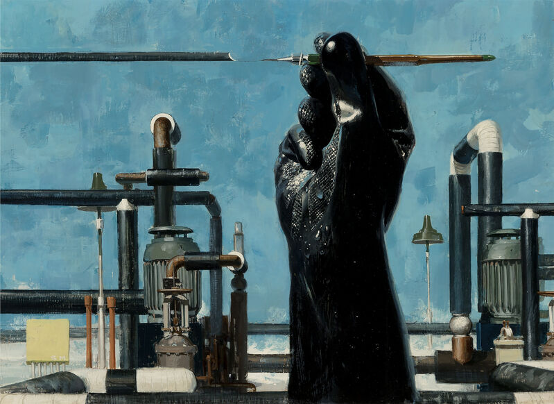 Acid Spashed Glove, Drafsman's Pencil and Piping - Fortune Magazine Business Week , ca. 1960 Oil on Board 16 1/5 × 22 1/5 × 3 in | 41.1 × 56.4 × 7.6 cm Frame included Blueprints into Reality - Building Constuction Rebar Concrete Forms , 1958 Oil on Canvas Board 23 × 31 in | 58.4 × 78.7 cm Frame included |